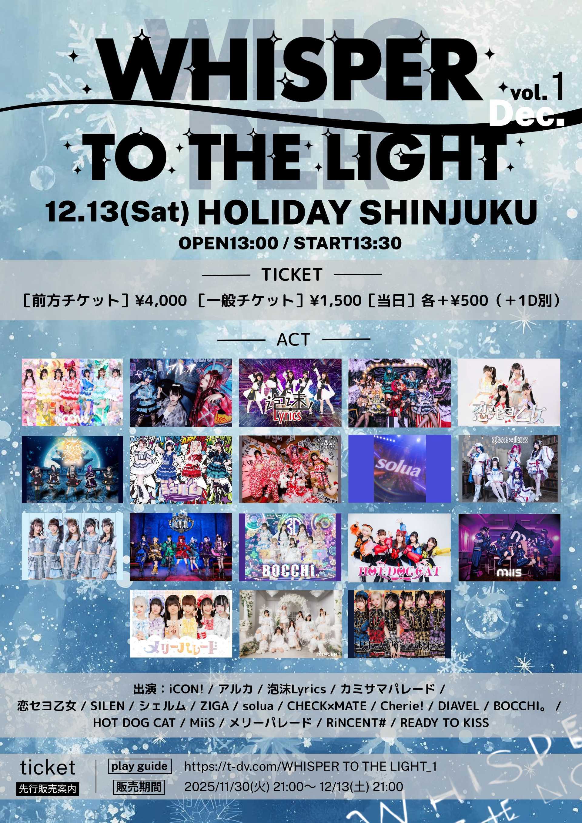 12月13日(土) WHISPER TO THE LIGHT Vol.1@HOLIDAY SHINJUKU リモートチェキ!