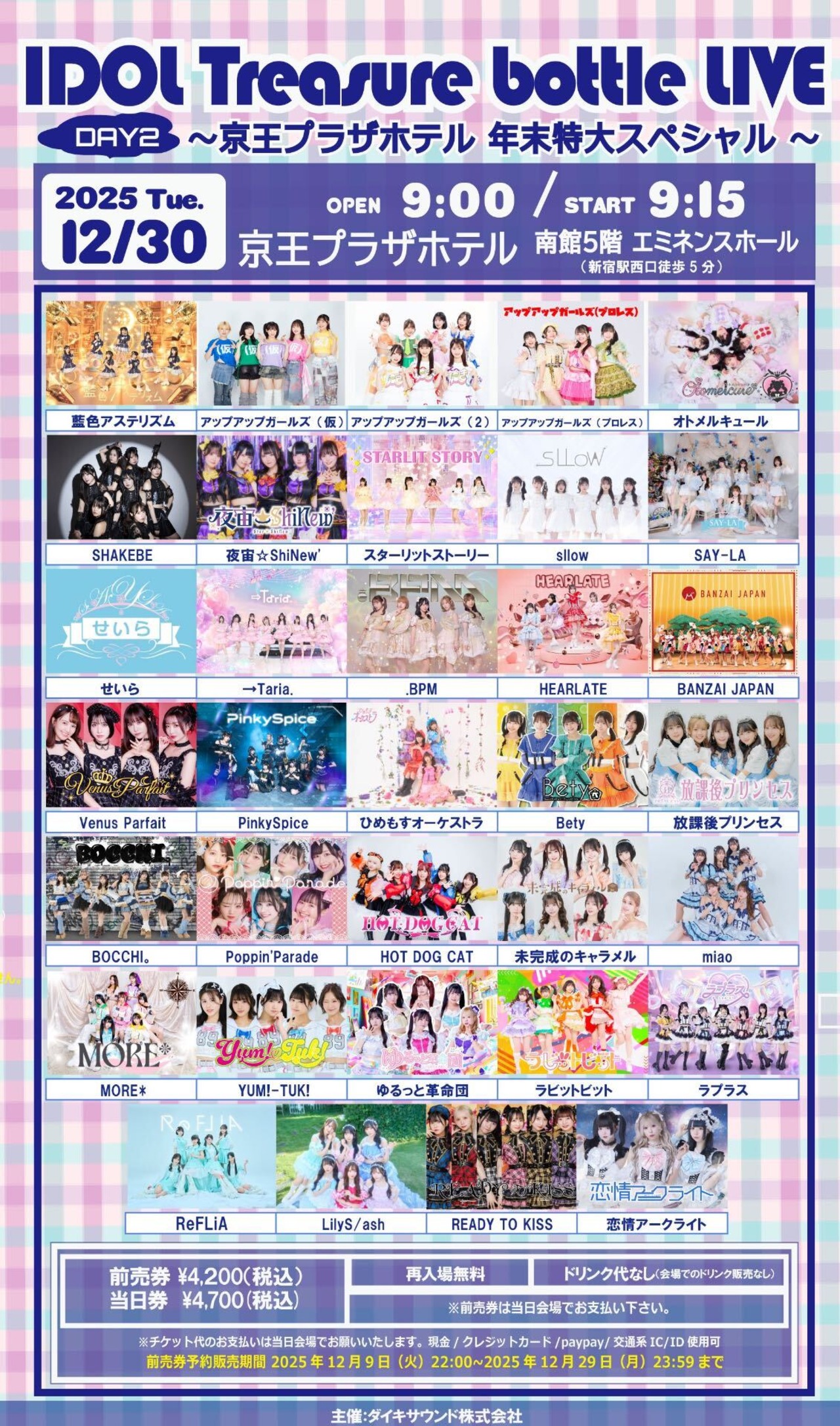 12月30日(火)②IDOL Treasure bottle LIVE ∼京王プラザホテル 年末特大スペシャル@京王プラザホテル 南館5階エミネンスホール リモートチェキ!