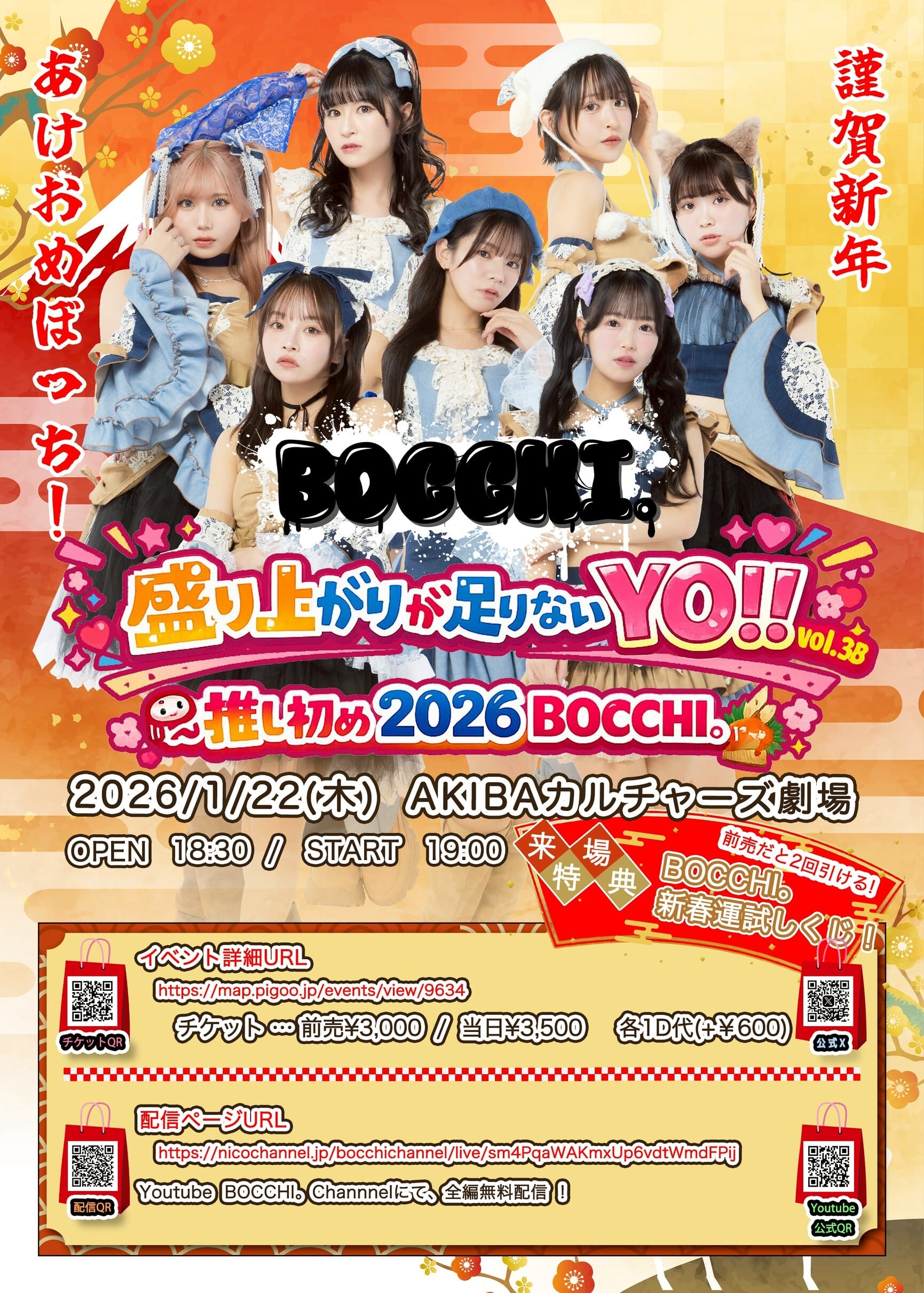 1月22日(木) 定期公演『盛り上がりが足りないYO!!』vol.38~推し初め2026 BOCCHI。初詣~@ AKIBAカルチャーズ劇場 リモートチェキ!